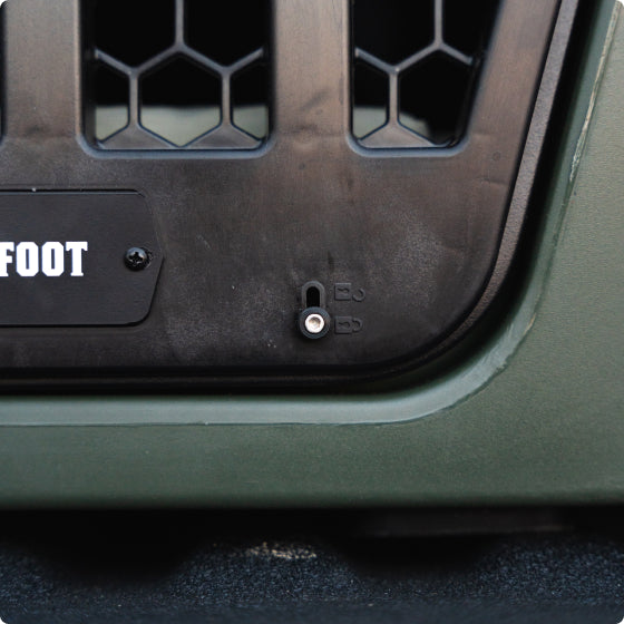Integrated stainless-steel pins, tested to not rip from kennel on impact. Ensures 5 Star safety when paired with our GUNNER tie-down straps.