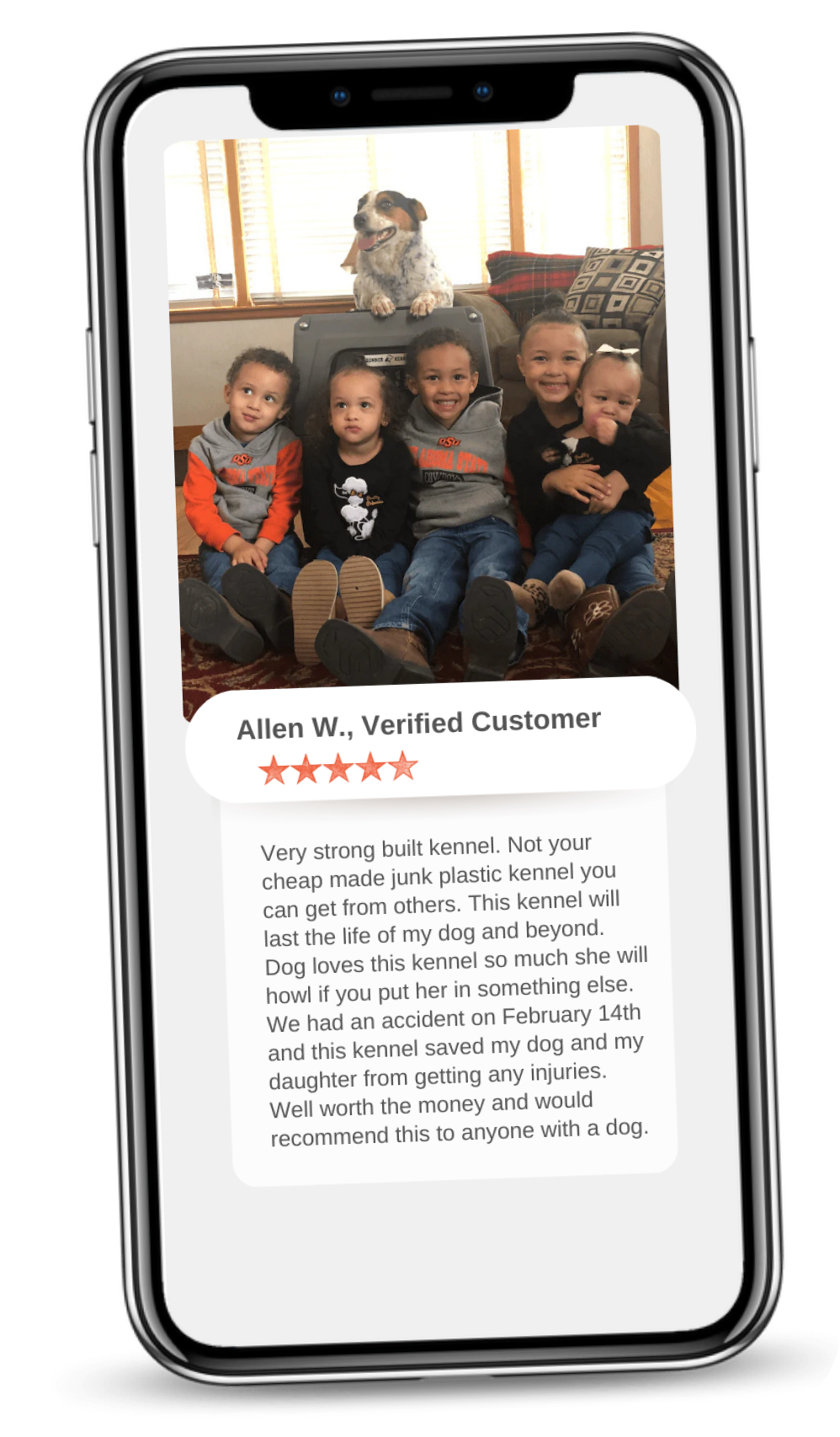 In a vehicle accident at 35 mph, an unrestrained 60 lb. dog can become 2,700 lb. of projectile. Our crate ensures your dog is contained (and safe) before, during & after impact.