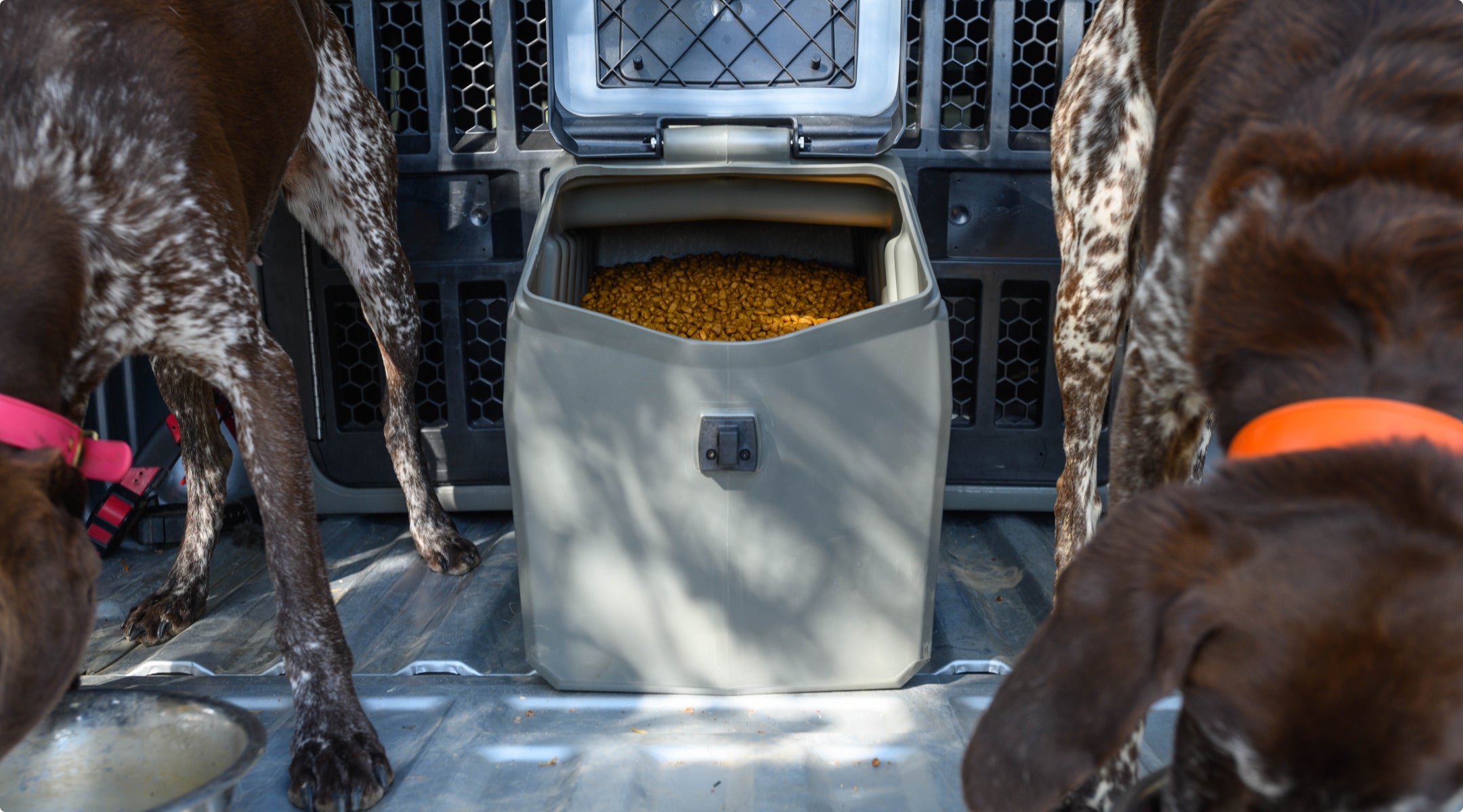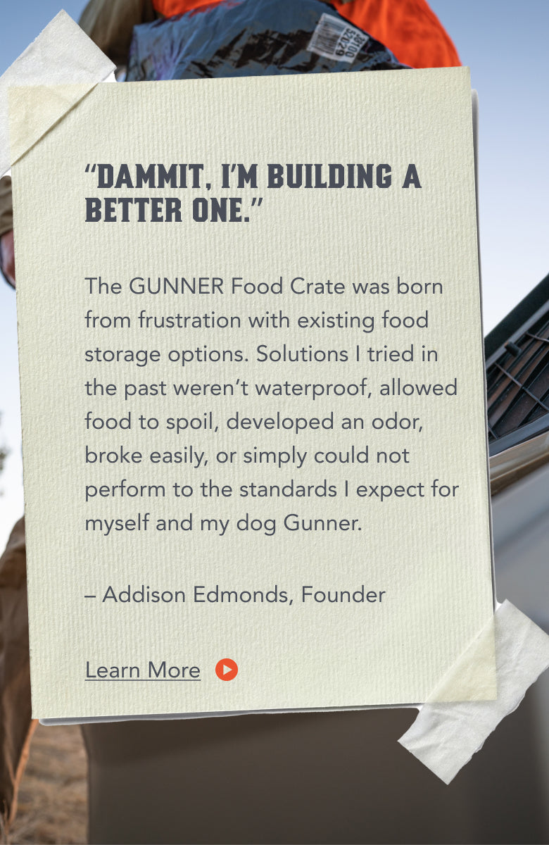 Once you open a bag of dog food, it's exposed to the elements and degradation begins. The three main factors that affect the nutritional value of dog food once it's been opened are air, moisture and temperature. The GUNNER Food Crate guards against all of these. And don't worry about your dog breaking in, we've made sure that won't happen either.