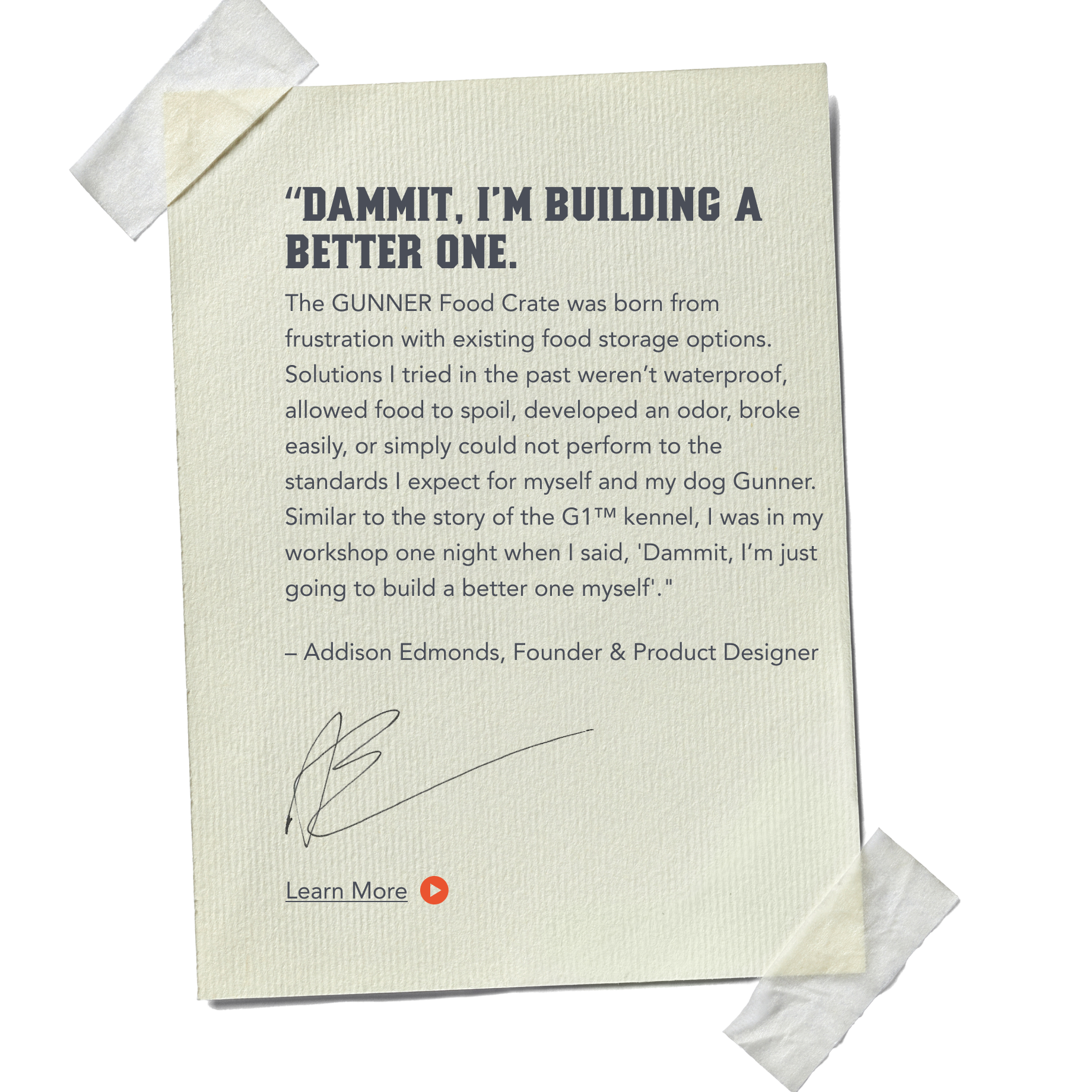 Personalize your GUNNER Food Crate with our custom engraved name plate.