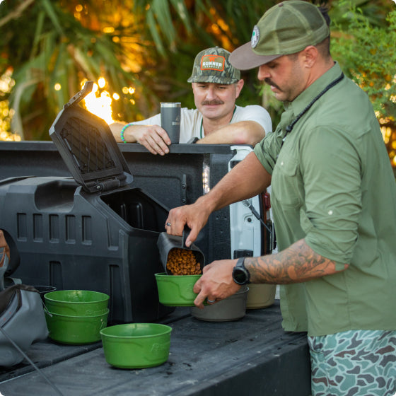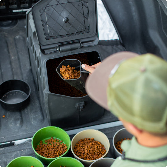 Our original design, holding up to 50 lb. of dry dog food. It's perfect for the camp, households with multiple dogs, and extended travels.