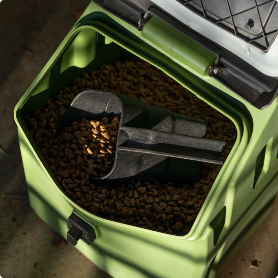 Smaller footprint, same big defense. Holding up to 30 lb. of dry dog food, this variation is designed for tighter spaces, weekend warriors and single-dog households.