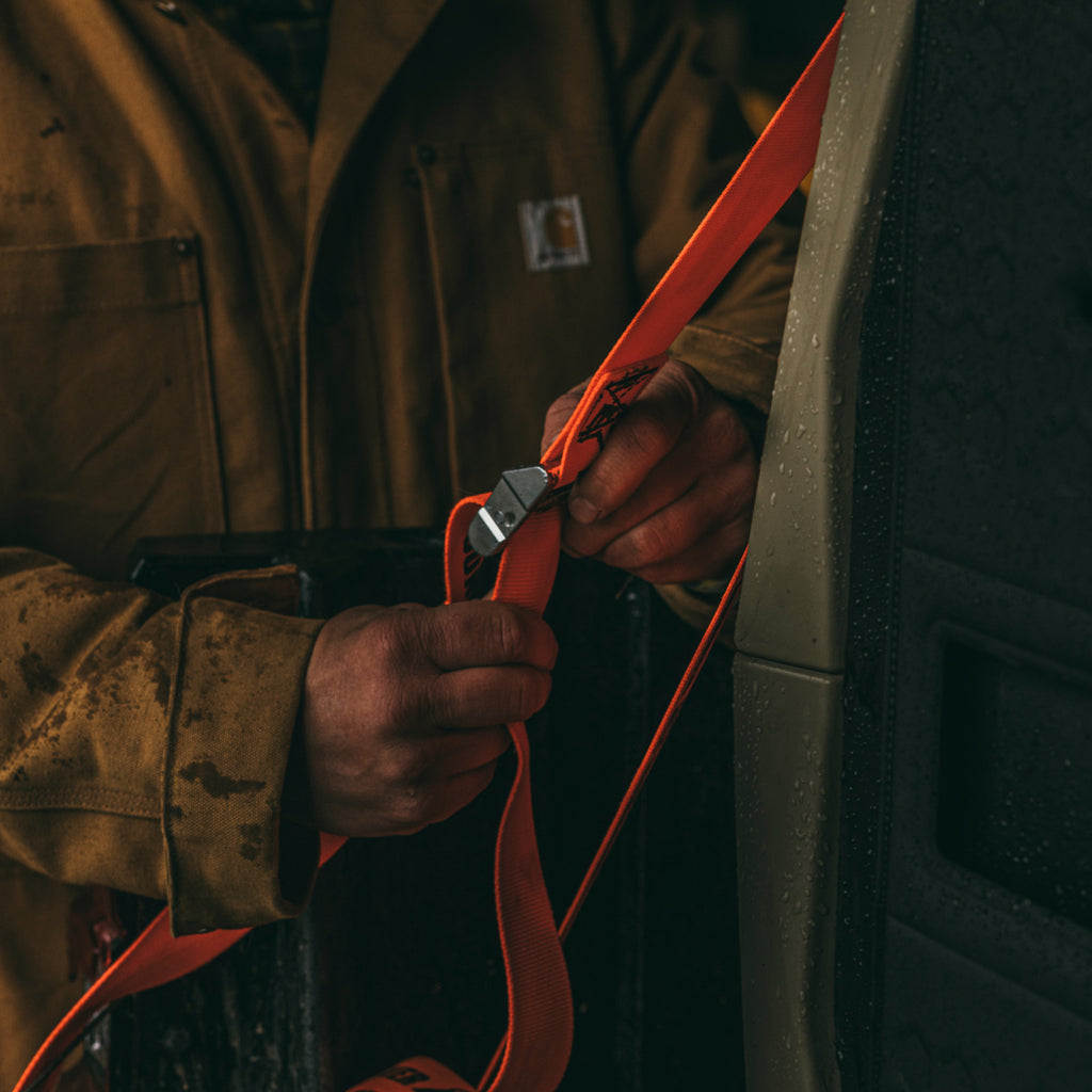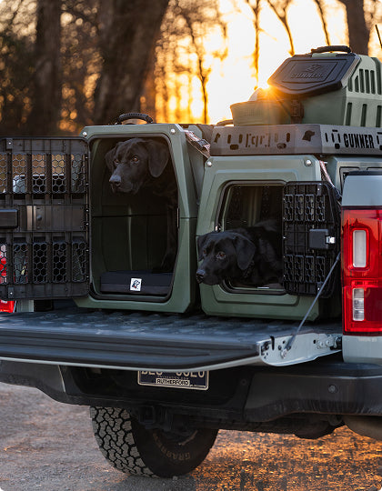 Tuck, my lab, was riding in his Gunner Kennels G1™ Intermediate in the truck’s bed, which was strapped down by the dog box’s stainless-steel anchor points. I found him safe and unharmed in his crate, which had absorbed the full impact of the rollover and still remained ratcheted to the bed. The door had remained locked and closed the entire time.