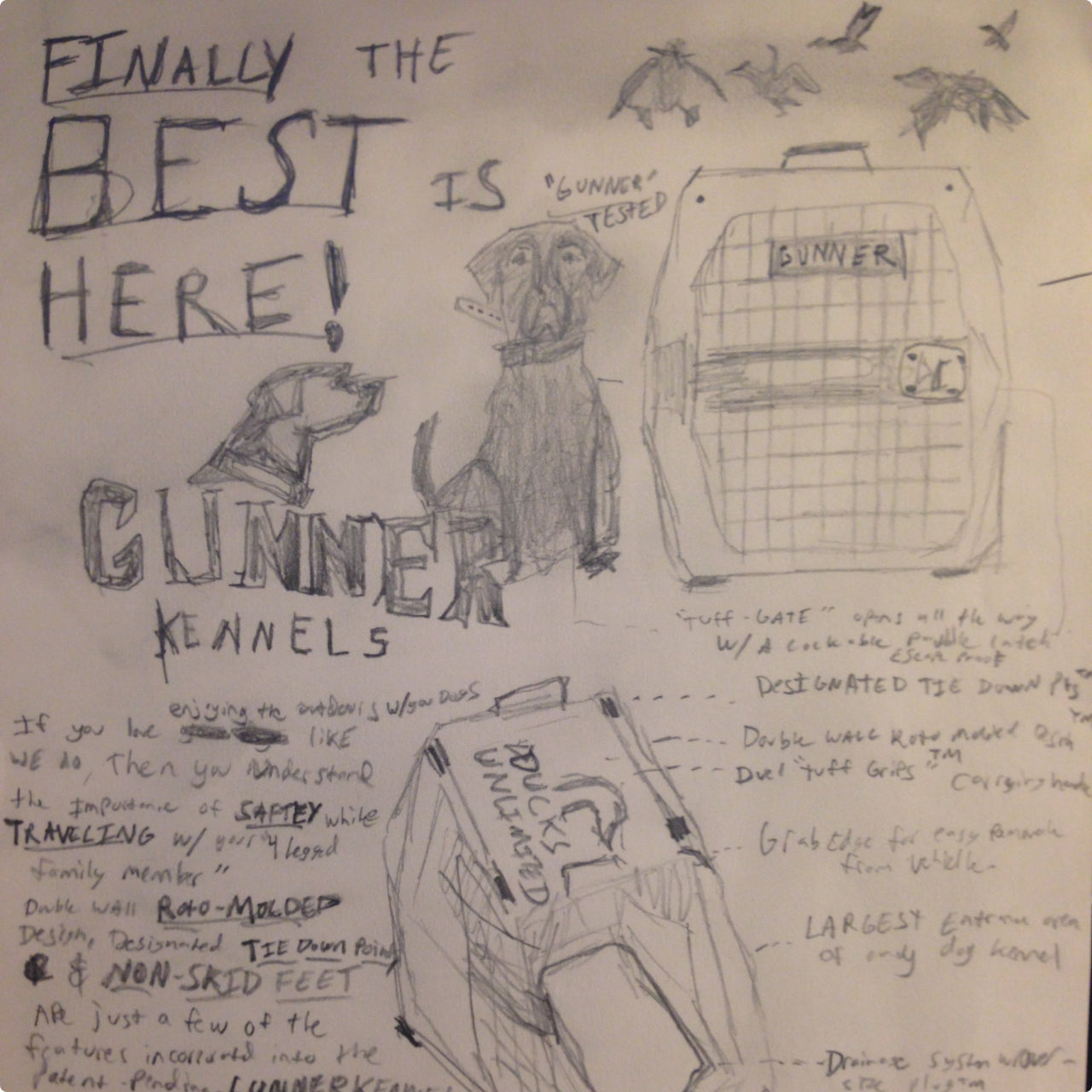 Addison lays the groundwork for the kennel with sketches and concepts for the strongest dog kennel in the world. He uses Gunner as the prototype for sizing.
