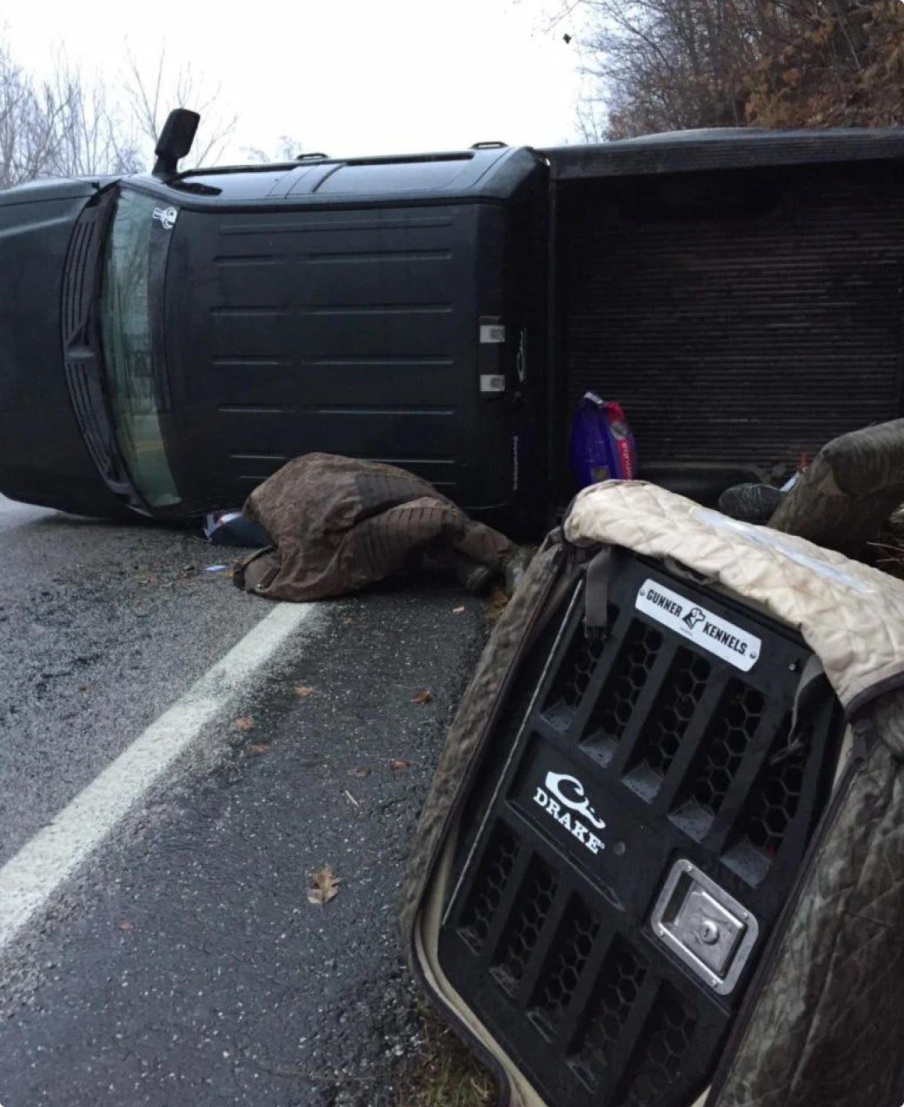 It's a full circle moment: early one morning on the way to a hunt, Addison and Emily are T-boned by another car. The G1™ Kennel protecting Chevy is the exact same kennel Gunner used before passing.