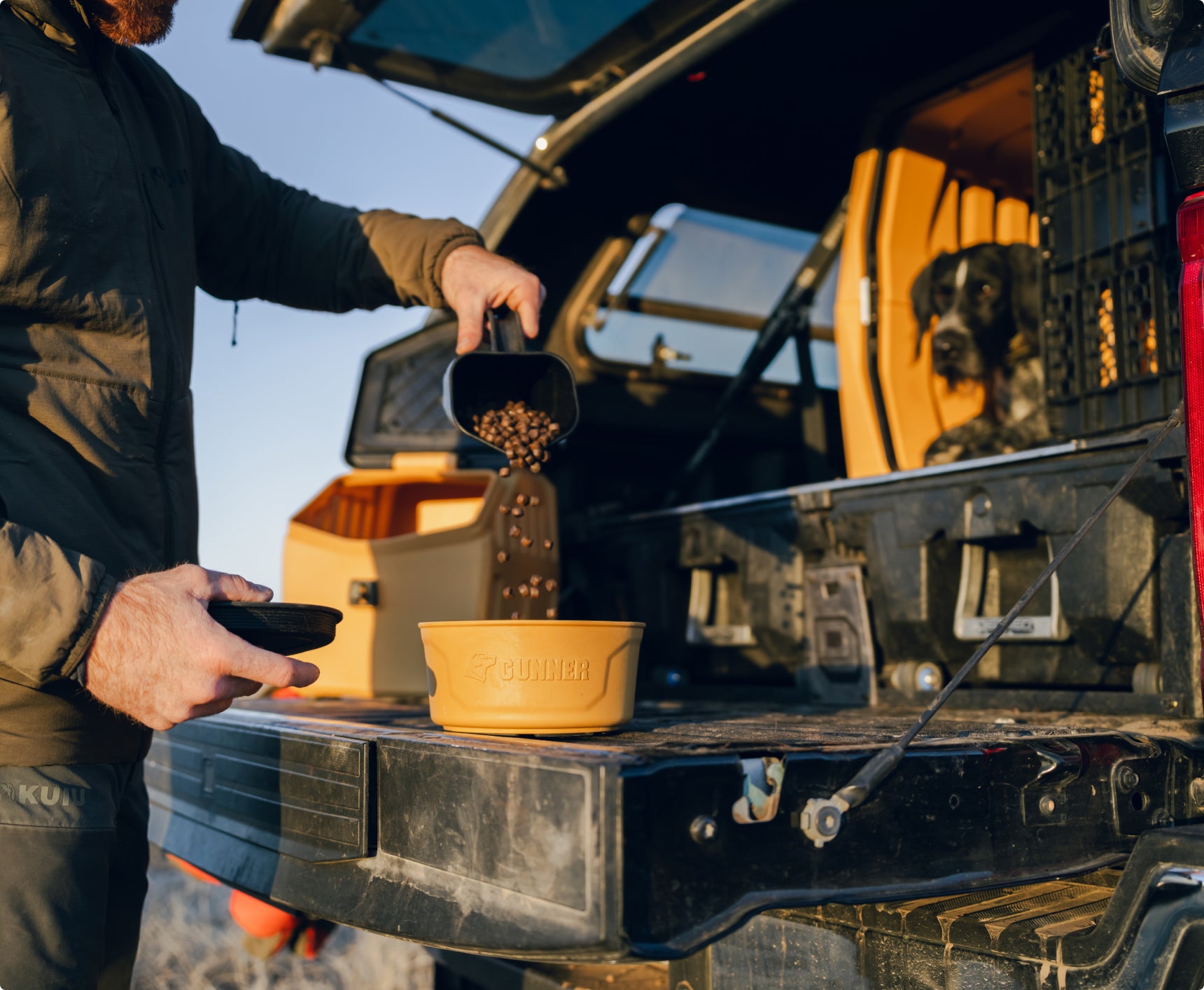 We designed it for the home but it's always ready for the road or travel with our spill-proof lid: the GUNNER Dog Bowl is rust proof, slip proof and impact resistant. Made in America.