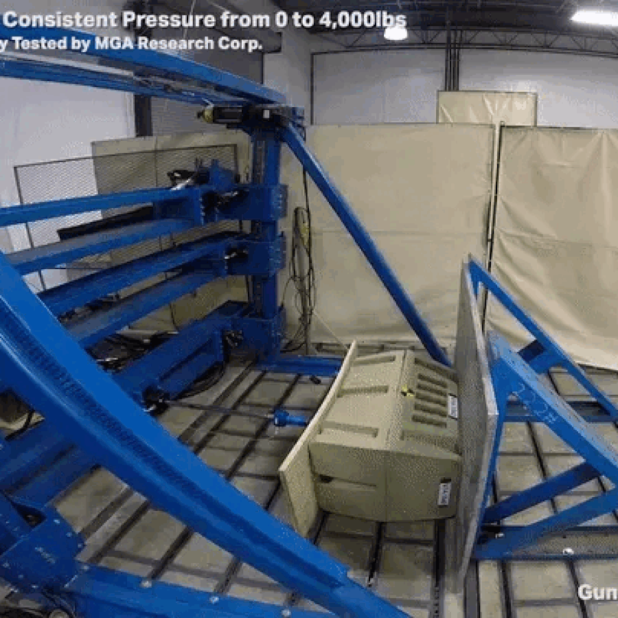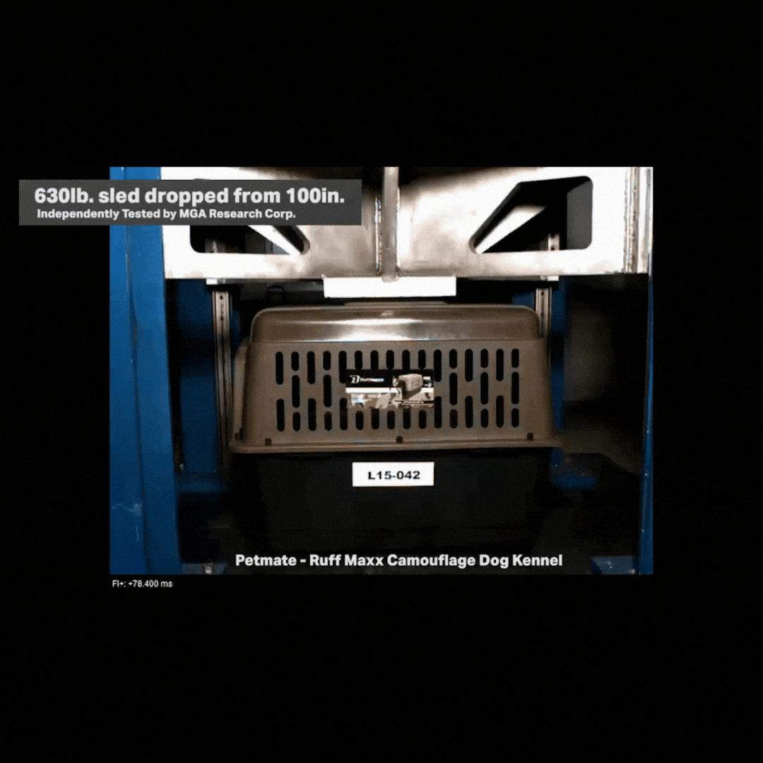 630 pounds dropped from 100 inches on a GUNNER Intermediate kennel.