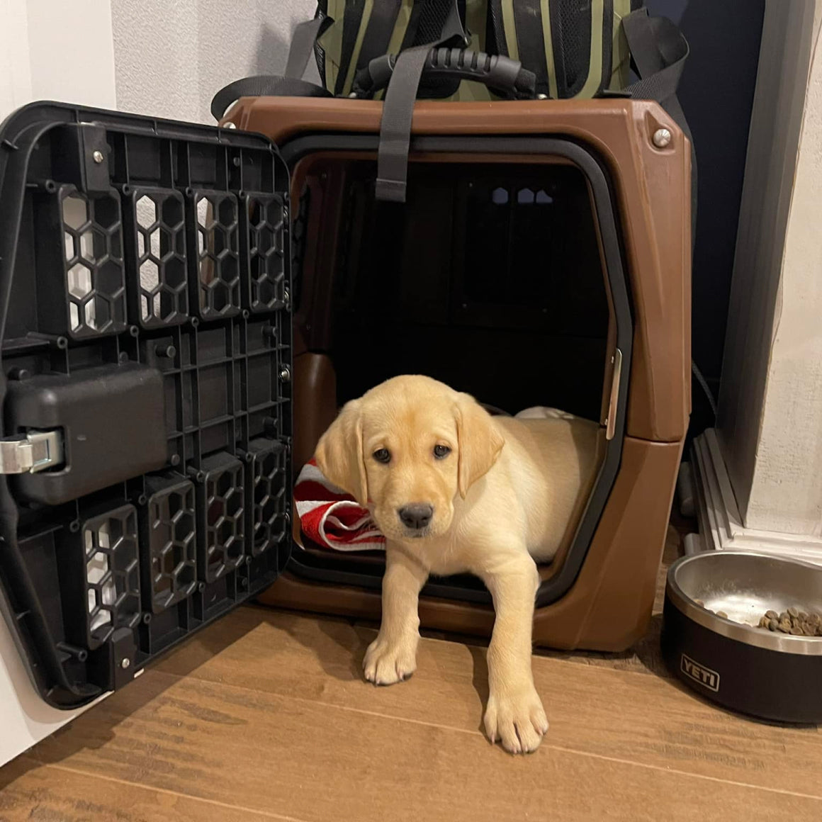 "The lead paramedic went to the car to open the kennel (he was in the Large), and instead of jumping on the paramedic, Bodhi immediately went into search mode and started dragging his leash to come to find me."Kennel Walkthrough