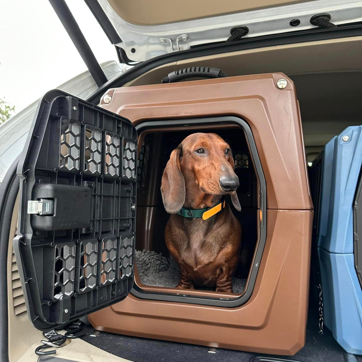 In a vehicle accident at 35 mph, an unrestrained 60 lb. dog can become 2,700 lb. of projectile. Our crate ensures your dog is contained (and safe) before, during & after impact.