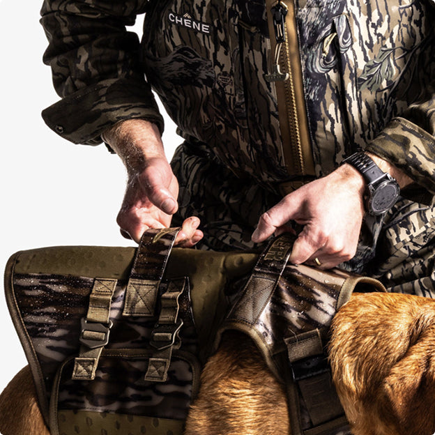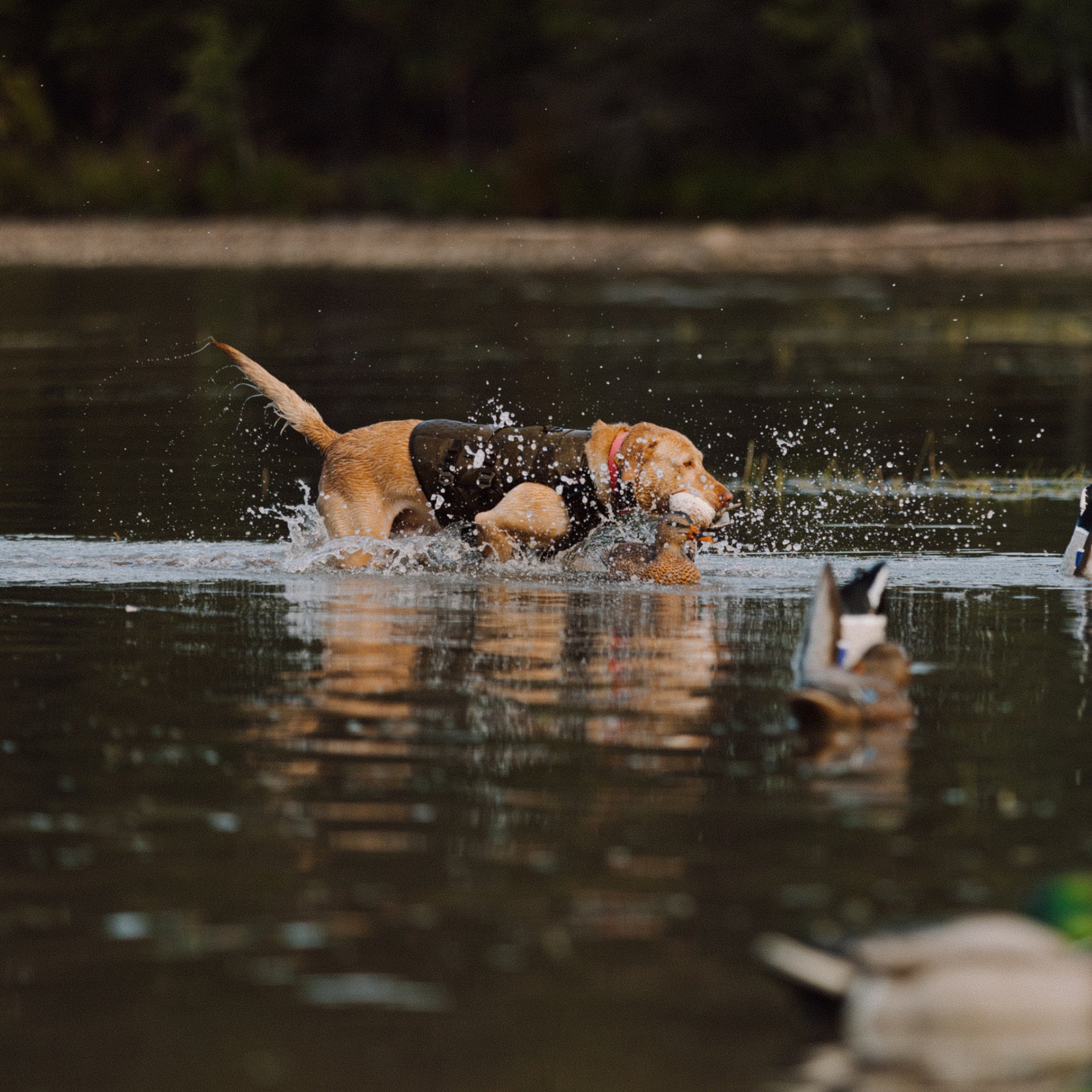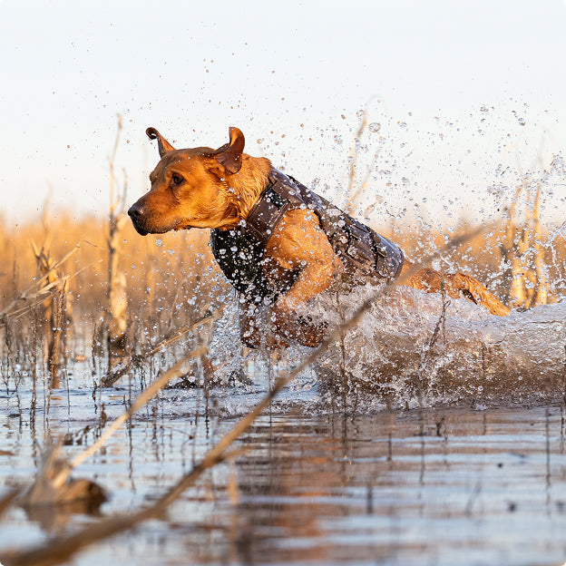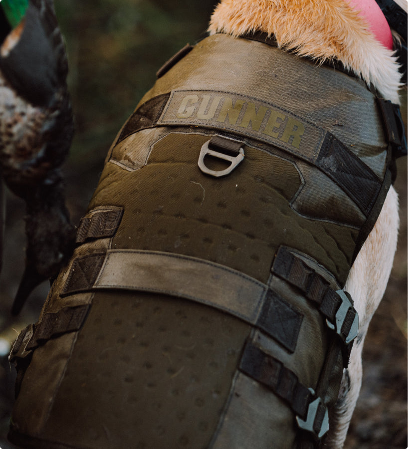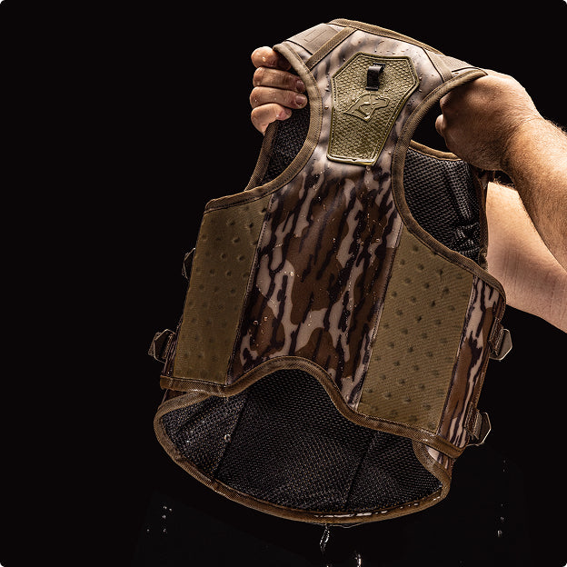 Our Waterfowl Vest is designed to help your dog regulate temperature through the full rhythm of the hunt, from the first retrieve to the last rest. In testing, our engineers found that GUNNER’s 5-Layer Performance System™ helped dogs retain internal warmth longer and returned them to a stable temperature faster. The result: quicker recovery, less energy loss, and lasting comfort in any condition. With an over-the-head entry, quick-attach G-hooks, and a six-point adjustment system, it’s the least frustrating vest for you to use and the most comfortable vest for your dog. No struggling with zippers, no wrestling a stiff neoprene shell: just set, secure, and send. Perforation channels, built-in drainage paths, and a breathable TPU shell accelerate drying and prevent water buildup – a major upgrade from traditional neoprene vests.
